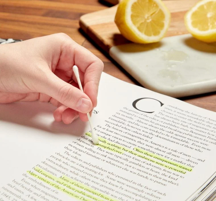 1. 레몬을 반으로 자르고 면봉에 약간의 즙을 묻힙니다.